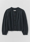 Considered shaping at the cuffs of our cardigan creates a rounded sleeve silhouette. Knitted from merino wool blended with recycled cashmere to an easy shape with a rounded ribbed neckline, then finished with large corozo buttons.