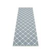 Enter a realm of regality with REX, a rug that exudes power and grandeur. Just like its counterpart REGINA, REX draws inspiration from the beauty of tiles, offering a smaller version of the beloved pattern. In Latin, REX means "king," and this name perfectly captures the royal essence that this rug brings to your space. Indulge in the refined craftsmanship of REX and experience the kingly aura it adds to your home. The tile-inspired pattern pays homage to a rich history of design, while its smaller size offers versatility in various living spaces. The contrasting welded edge adds a touch of modern expression while maintaining the classic personality of the design. Released a decade ago, both REGINA and REX have stood the test of time and continue to be cherished patterns of Pappelina. Thanks to the material's durability, the rug has a long lifespan, which gives a low environmental impact. Pappelina plastic rug REX Storm Vanilla