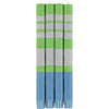 Eco and Fair Trade, hand poured in bold bands of British Colour Standard stripes of Nanking Blue, Grass Green & Willow Grey.