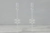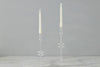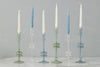 Elevate your home decor with a pair of Clear Glass Candlesticks. These expertly crafted taper candle holders add a touch of timeless elegance to any room. Available in two sizes and three colors, they are perfect for adding a pop of color to your dinner party or creating a statement throughout your home. Mix and match the sizes and colors to create a memorable tablescape. These candlesticks pair perfectly with our Twisted Taper Candles. * Hand wash only. Never use sharp objects to remove hardened wax drips. * Affix stickers to the underside of each candlestick foot. Avoid placing stickers on any other part to preserve the organic color finish.