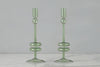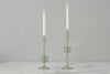 Elevate your home decor with a pair of Sage Glass Candlesticks. These expertly crafted taper candle holders add a touch of timeless elegance to any room. Available in two sizes and three colors, they are perfect for adding a pop of color to your dinner party or creating a statement throughout your home. Mix and match the sizes and colors to create a memorable tablescape. These candlesticks pair perfectly with our Twisted Taper Candles. * Hand wash only. Never use sharp objects to remove hardened wax drips. * Affix stickers to the underside of each candlestick foot. Avoid placing stickers on any other part to preserve the organic color finish.