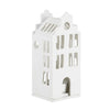 Village House - Canal House with Stepped Gable Roof is reminiscent of the Dutch canal houses of the 17th century, used for living and for business. This tiny home is handcrafted. The outline of this beautiful piece will add interest to your collection of porcelain houses. Porcelain base holds light source which will glow through the many windows and door.